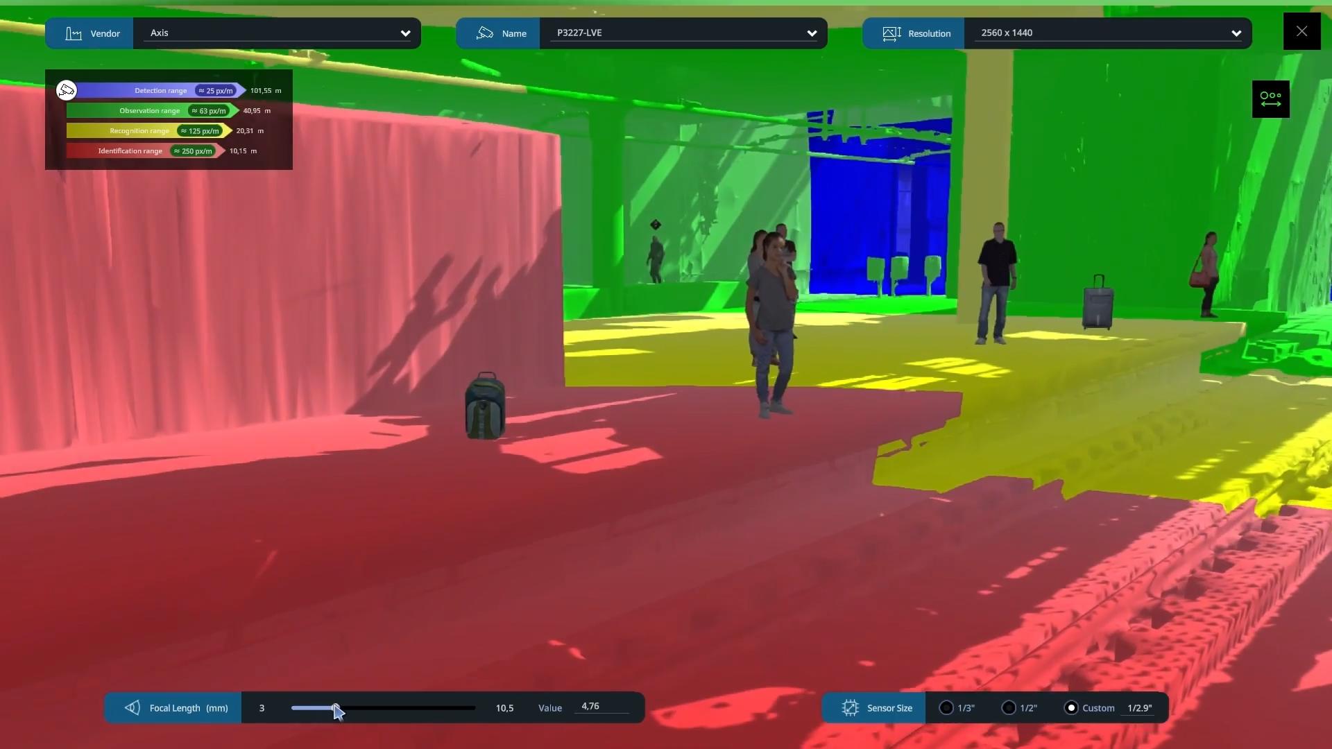 Another tool, called Designer, allows planners to test camera and sensor placement on the digital model to identify blind spots before installing equipment. Vojtek demonstrated it by placing a marker representing a physical lidar sensor on the digital model, with a videogame-like thief crouched down behind a wall.