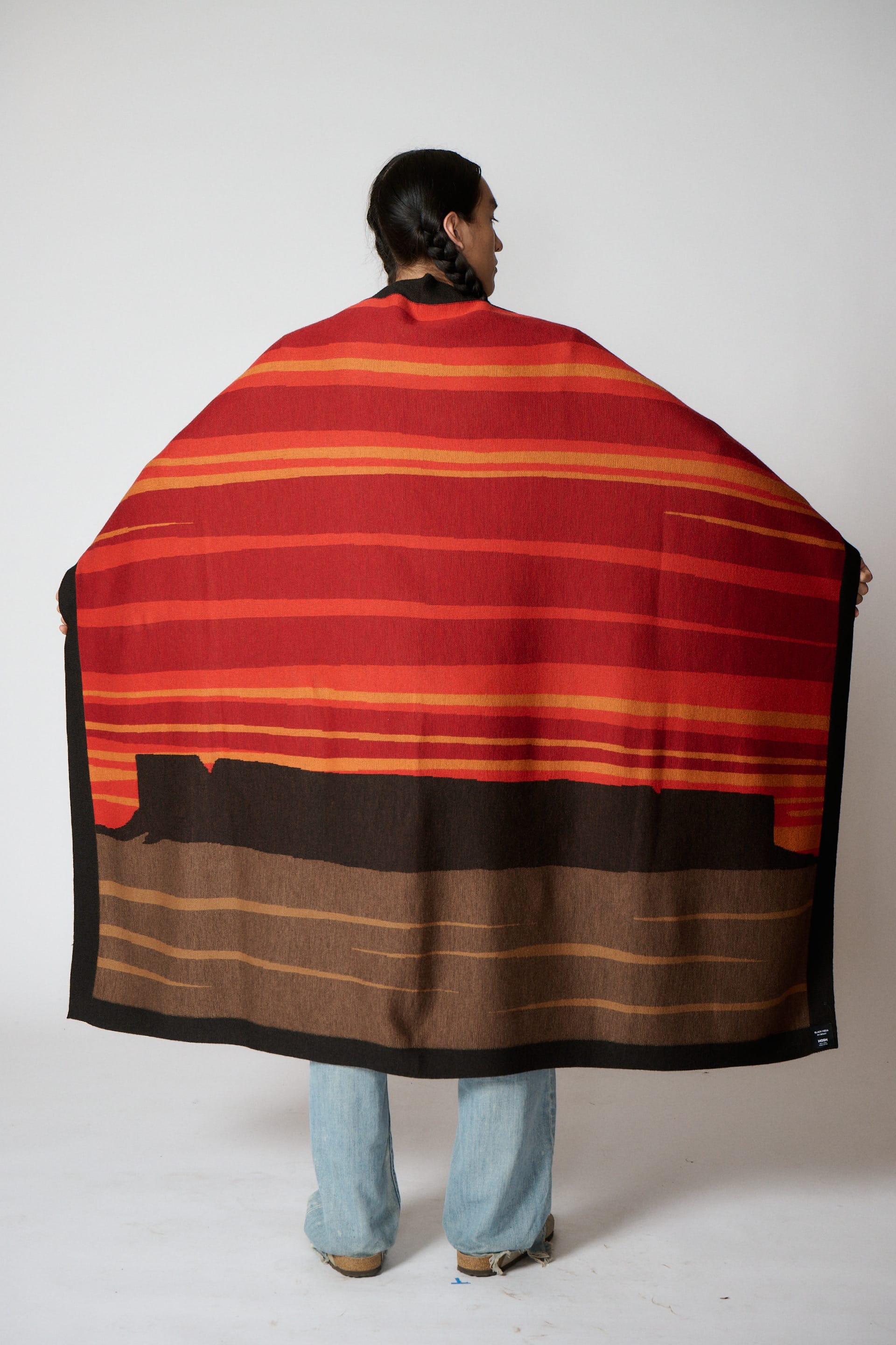 Hosh’s most recent release was launched October 13 on Indigenous Peoples’ Day and features work by Begay and her sisters, Berdine Begay and Berdina Charley. It marks the first time the three sisters, who come from a six-generation Navajo weaving family, have collaborated on a commercial collection. The release includes limited-edition T-shirts adapted from handwoven Navajo tapestries, along with a blanket and a selection of hats.
