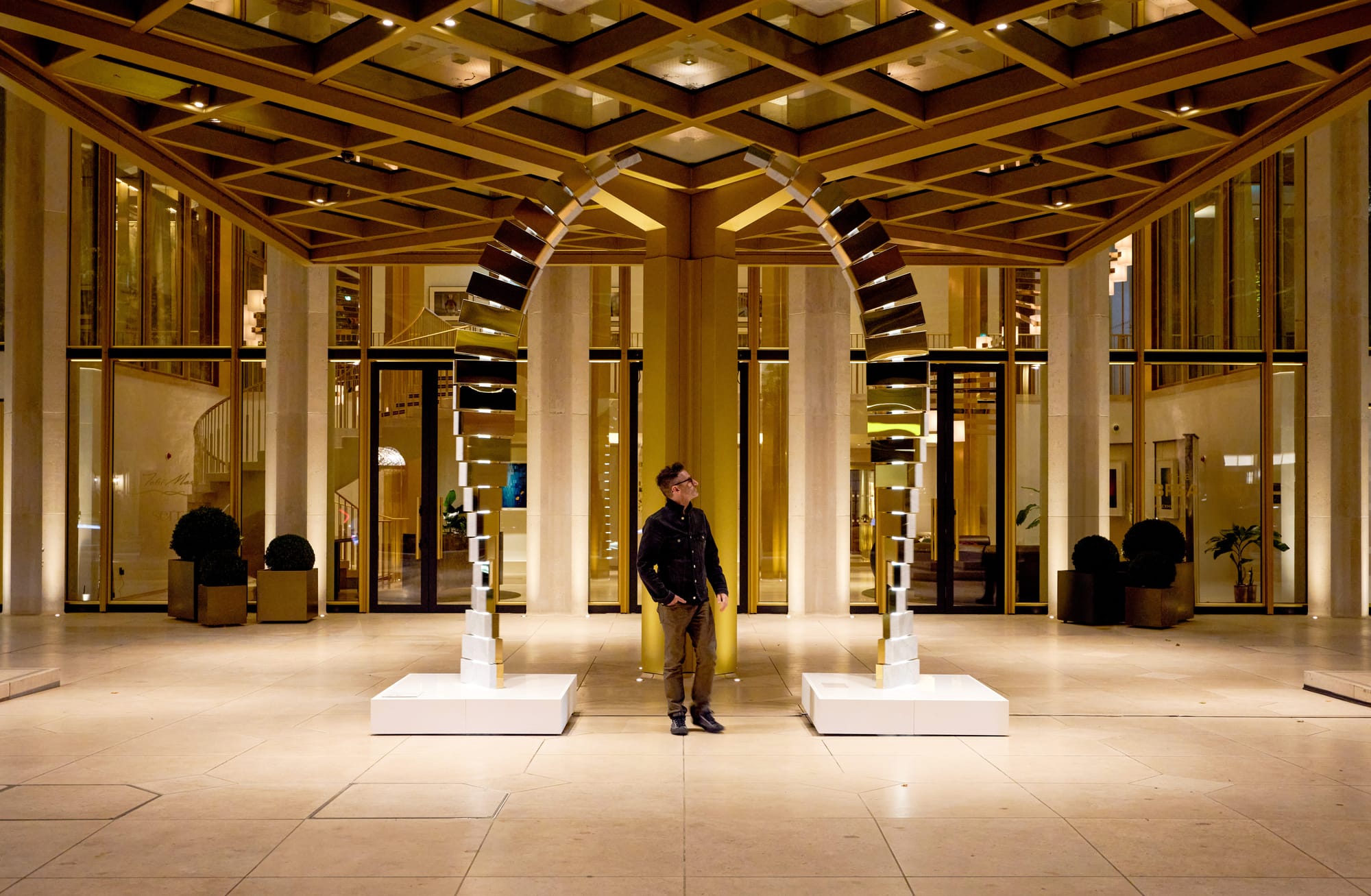 Among the works is Carbon Wake, a 20-foot-wide gold kinetic piece that will hang on the façade of 1 Hotel South Beach. A large moving archway titled Consumption will rise from Tala Beach.