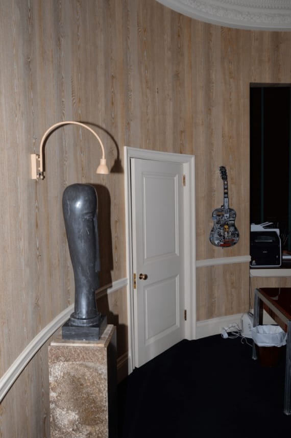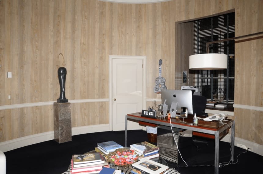 In one room that could be described as the “piano room” for its Steinway & Sons baby grand piano, Epstein anchored the aesthetics around an actual collage by French artist Jean-Charles Blais titled Personnage, which was seemingly bought by Epstein from Artcurial in Paris in 2005. The artwork did not get a single bid in the Millea Bros. auction.