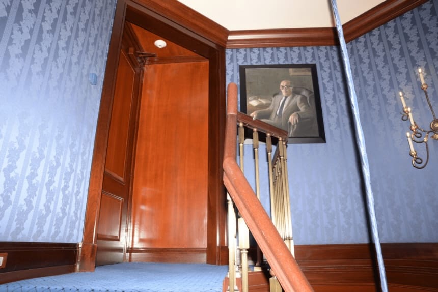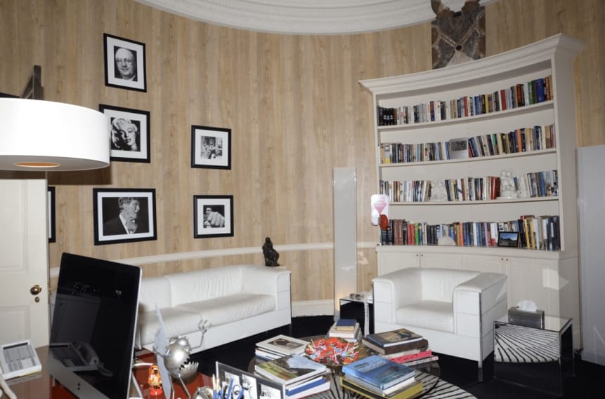 That maquette was featured in an apparent office space that also featured famous photographs of celebrities, including Muhammad Ali, Marilyn Monroe and Robert Redford.