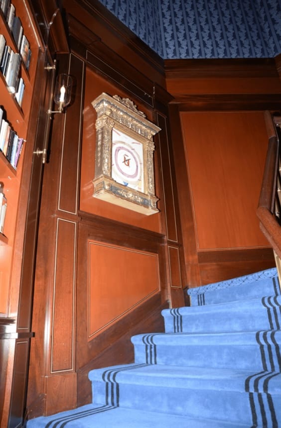A tall gilt-bronze and marble pedestal clock is seen in the photos, looking like clocks credited to Jean Adolphe Lavergne. Millea Bros. also sold a sculptural bronze mantel clock attributed to Lesieur à Paris as part of the estate sale.
