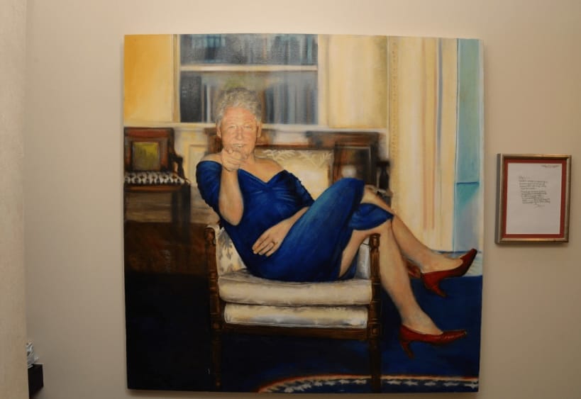 Another grouping centers on the headline-making painting depicting Bill Clinton in a blue dress, which first came to light in August 2019, just days after Epstein’s death in a Manhattan jail cell. But analyzing the Justice Department photos reveals how it was positioned within Epstein’s home, rather than as a lone shock piece.