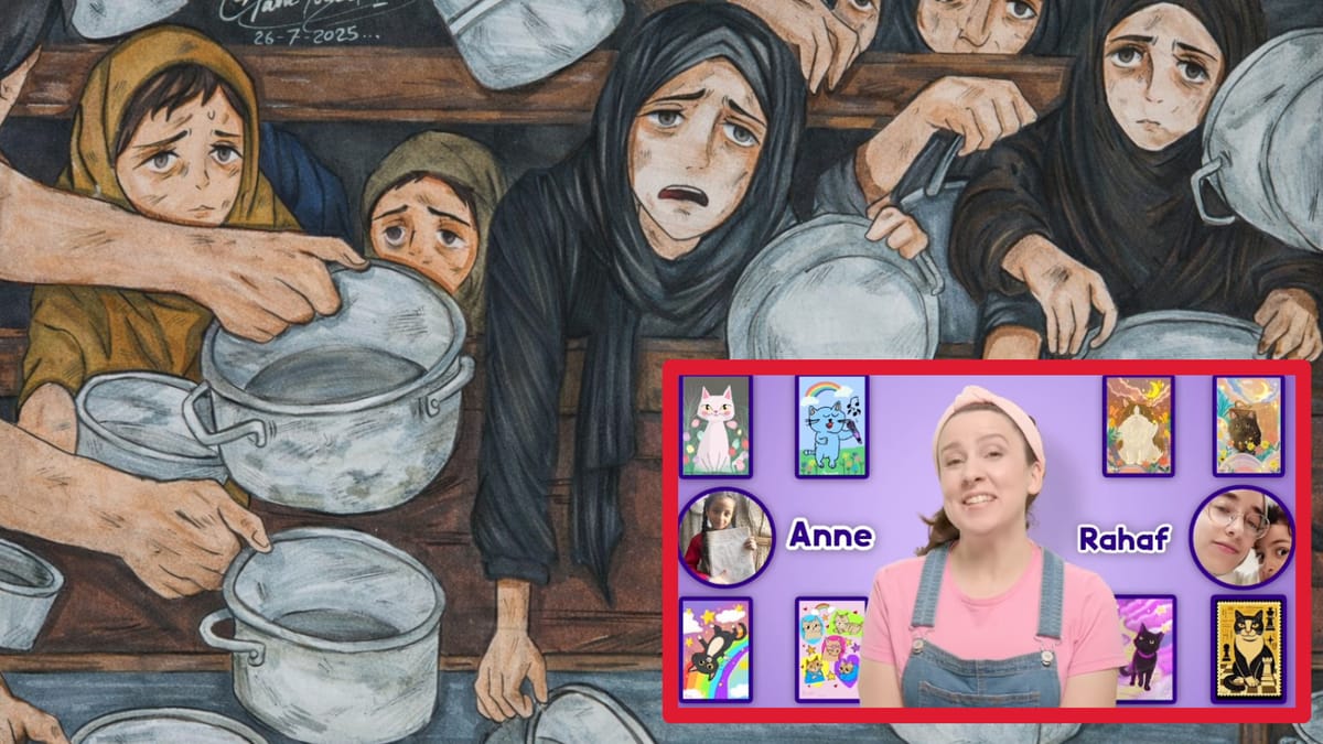 In the past year, Accurso has become a prominent voice supporting children in Gaza and has been in direct contact with children living through the genocide. Many of those children have shared their artwork with her and she has curated her selection of works for inclusion in the sale.