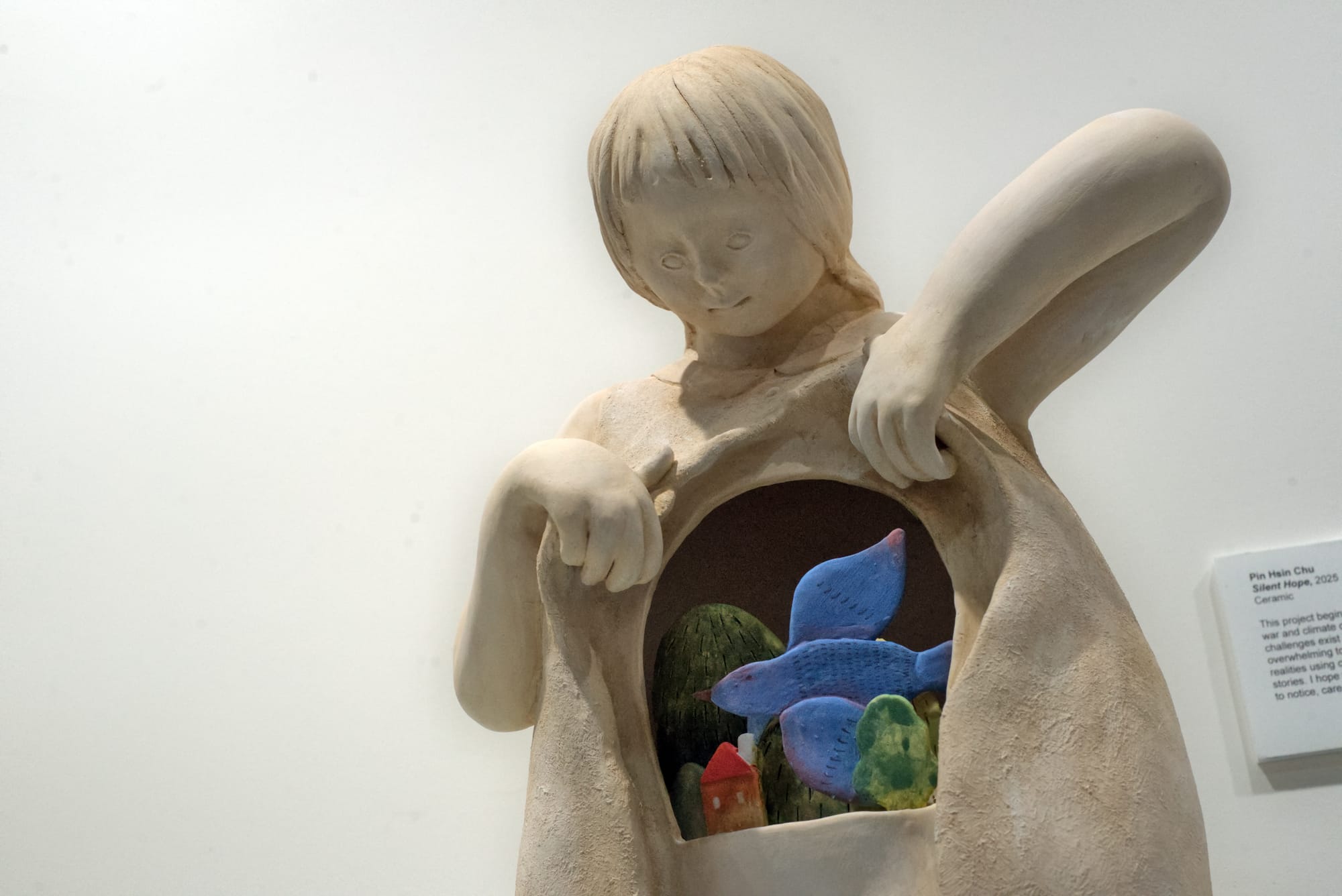 “These challenges exist everywhere, yet they are often overlooked or feel too overwhelming to face,” Chu said. “Through my ceramic works, I interpret these realities using clay as a quiet but expressive medium to tell children’s stories. I hope viewers feel a sense of beauty and peace and are moved to notice, care and reflect.”