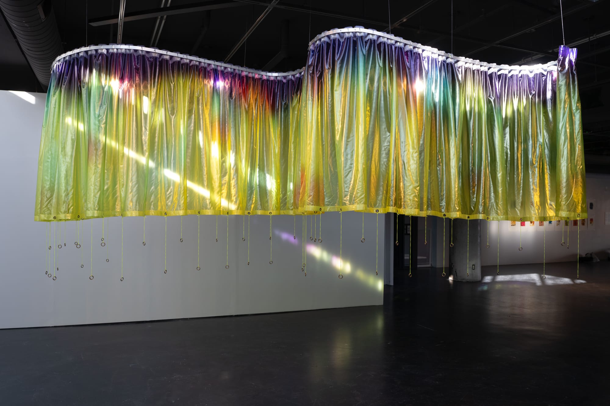 Another notable work is an installation by artist Jota Mombaça, produced by submerging textiles in the St. Lawrence River. The piece evokes “ocean crossings, colonial trade routes and water ecologies.”