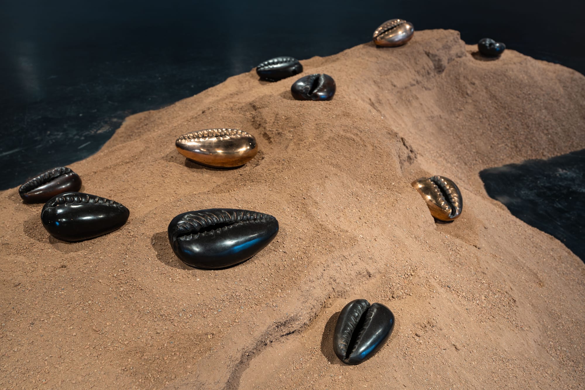 Other highlights include a nearly six-minute video by artist Pia Arke titled Arctic Hysteria, which revisits colonial medical narratives in Greenland, and artist Oluseye’s monumental bronze cowrie shells addressing the histories of Atlantic trade and slavery.